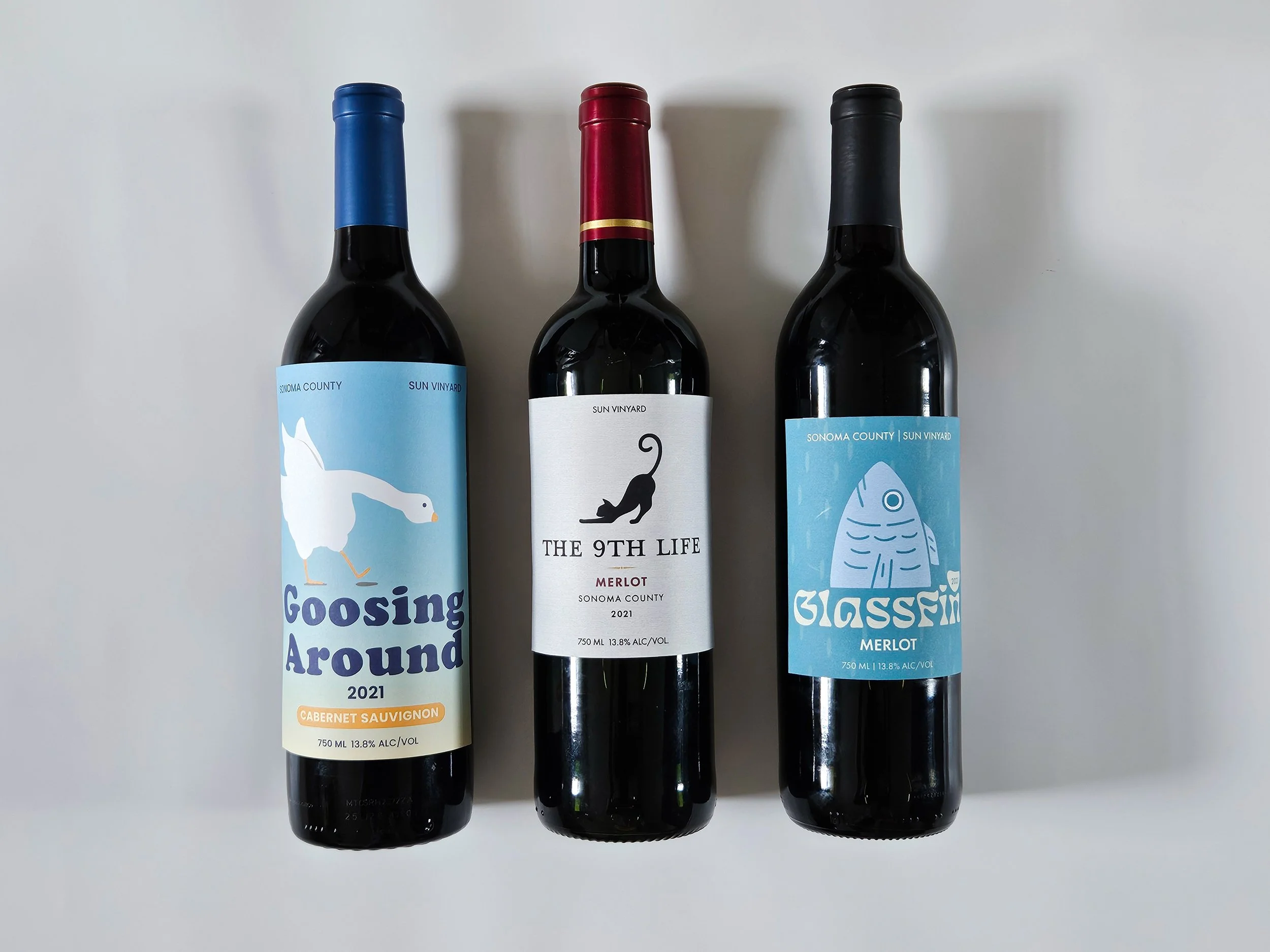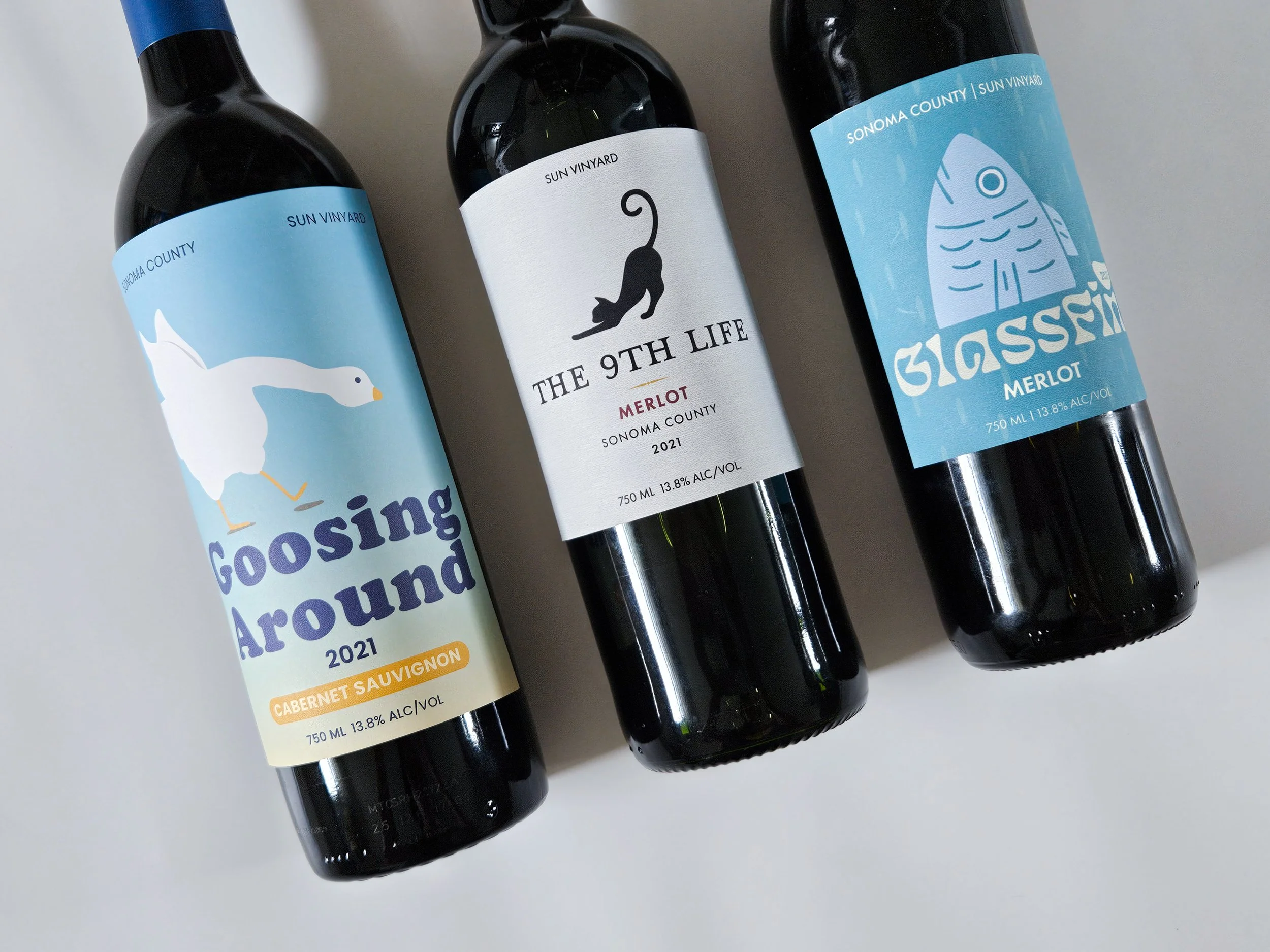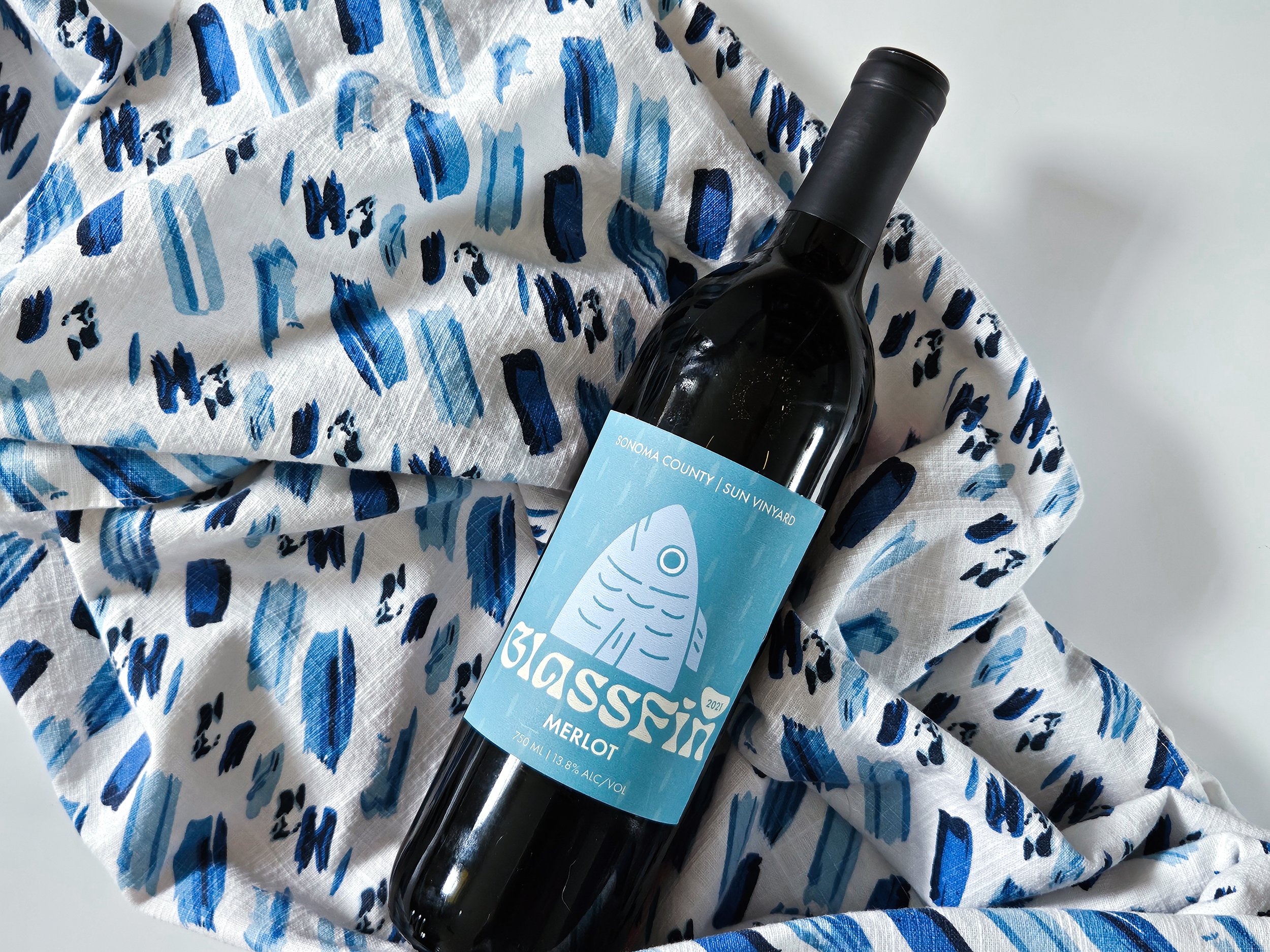 For the mid-range design, I wanted something more modern and fun, so I challenged myself to use a fish illustration since I don’t see fish often on wine labels. It gave me the chance to do something a little different while still keeping the design clean and approachable.