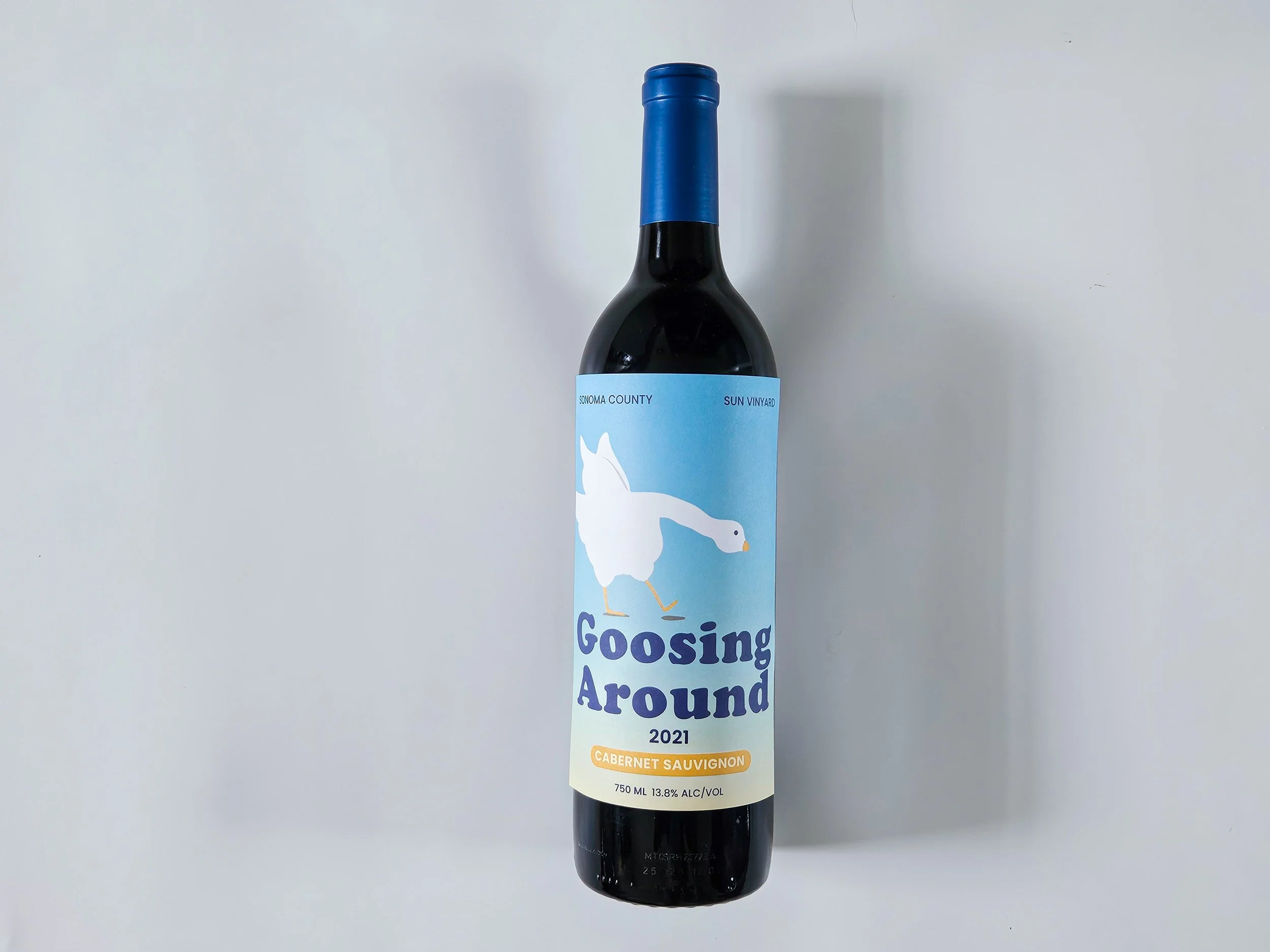 For the low-end bottle, I leaned into humor and created a goofy goose illustration. The playful, lighthearted style made it feel casual and easygoing, which fits the lower price point. Altogether, the three labels show how the tone, style, and level of detail can shift depending on the intended audience, while still letting me explore different creative directions.