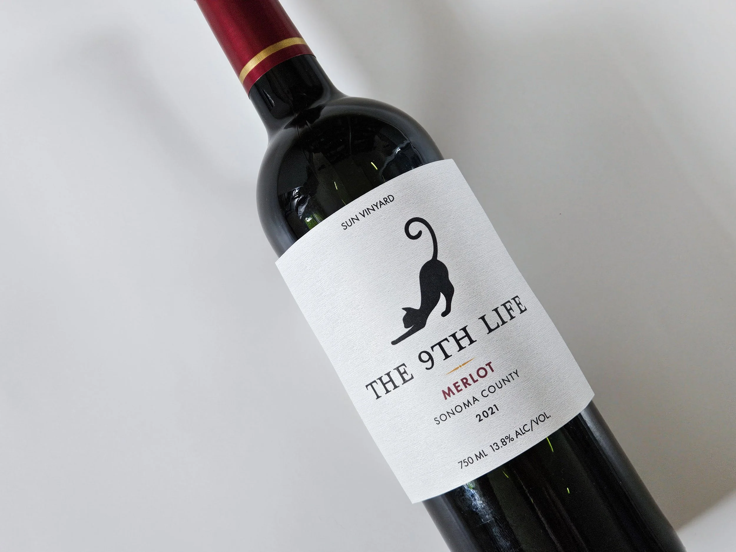 Using this research as a guide, I brainstormed names and concepts for my three designs. For the high-end label, I wanted something simple but striking. With Halloween around the corner, I landed on the name The 9th Life and illustrated a black cat whose tail curled into the shape of the number nine.